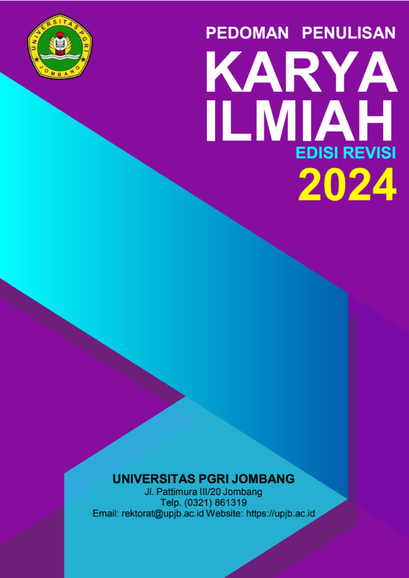 Penulisan karya ilmiah, yang mencakup makalah, skripsi, tesis, dan artikel, merupakan instrumen vital di perguruan tinggi untuk mengomunikasikan gagasan serta hasil penelitian secara objektif guna memperkaya khasanah keilmuan. Sebagai bentuk pertanggungjawaban ilmiah yang sistematis, karya ini harus disusun berdasarkan kaidah standar, sehingga Universitas PGRI Jombang menerbitkan revisi Pedoman Penulisan Karya Ilmiah. Revisi ini dilakukan untuk menyesuaikan perkembangan teknik penulisan, menyeragamkan perbedaan sistematika, serta memenuhi kebijakan institusi dalam meningkatkan mutu akademik. Pedoman tersebut berfungsi sebagai acuan baku bagi mahasiswa dan dosen demi mewujudkan keseragaman, konsistensi, dan kualitas karya ilmiah di lingkungan universitas.
